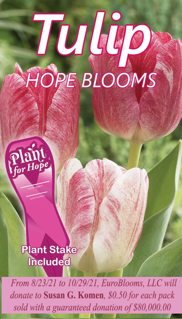 Uniquely variable white and pink blooms with pink mottling. Named in honor of Susan G. Komen for the Cure. A truly special tulip variety and a must for every garden. The tulips reach a mature height of 12”-16”.